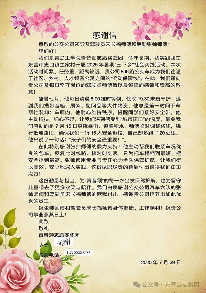 圓夢高考|“你們全力以赴,我們全程護航!”為保障高考期間交通順暢有序,東營市公交集團以高度的責任感提前布局、周密安排,傾力打造安全、高效的送考保障體系,誓為全市考生鋪就一條平安赴考的坦途。市公交集團選拔駕駛經(jīng)驗豐富且服務意識突出的優(yōu)秀駕駛員...[查看更多>>]